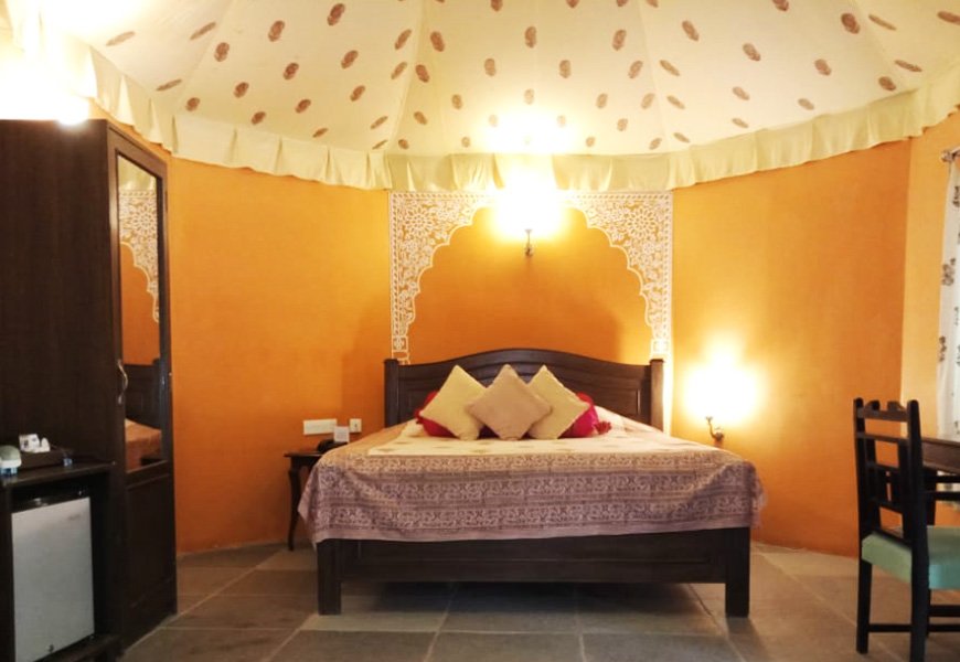 These deluxe room cottages are semi rural dwelling that are ethnically designed, yet cozy enough. They represent the ethnic culture of Rajasthan as opposed to the majestic lifestyle of the Kings.
