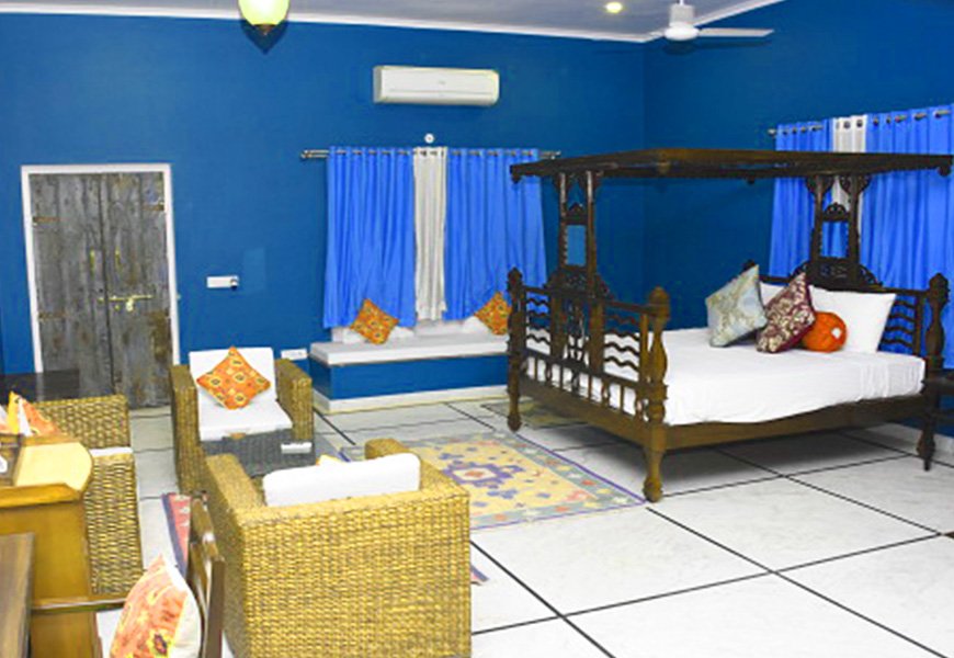 These royal suites are semi rural dwelling that are ethnically designed, yet cozy enough. They represent the ethnic culture of Rajasthan as opposed to the majestic lifestyle of the Kings.